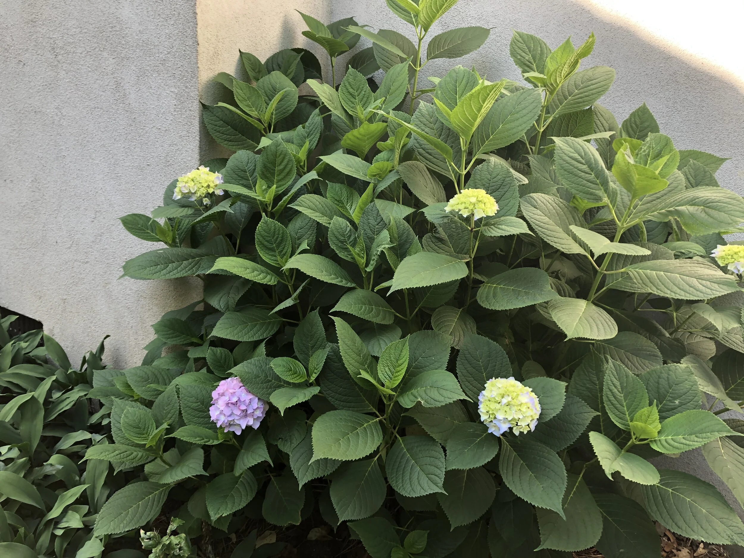The landscape gardener got to work, and two hours later I was horrified to see that he had aggressively pruned my largest hydrangea bush. He looked sheepish and said, “I know: you told me not to cut the hydrangeas back, but I forgot until I was almost finished with this bush. I left the others alone.” I was disappointed, but I comforted myself with the knowledge that three of the other five bushes were large enough to bloom.
